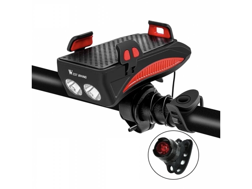 Světlo na kolo s držákem na telefon a powerbankou 4v1