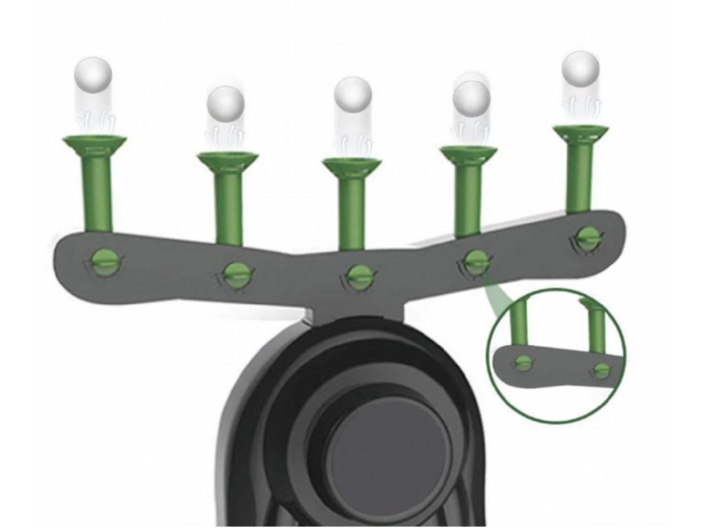 Terč se skládá z plastové základny s několika výduchy, které díky speciálnímu mechanismu vyfukování vzduchu pohybují polystyrénovými míčky ve vzduchu. Pohybující míčky je obtížnější, ale za to zábavnější trefit.