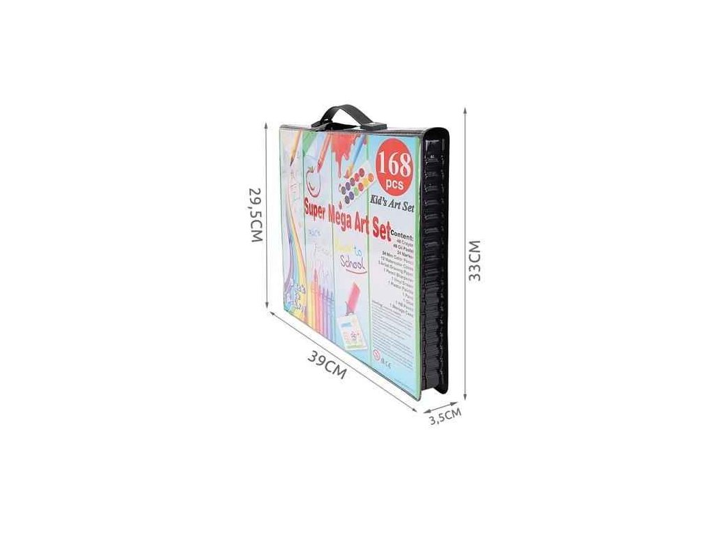 Malířská sada obsahuje 168 kusů z toho 24 pastelek, 24 fixů, 48 olejových pastelek, 48 svíčkových pastelek, 12 akvarelových barev, ořezávátko, lepidlo, korektor, guma, listy A4 s naší kreativní sadou vytvoříte ta nejoriginálnější díla :)